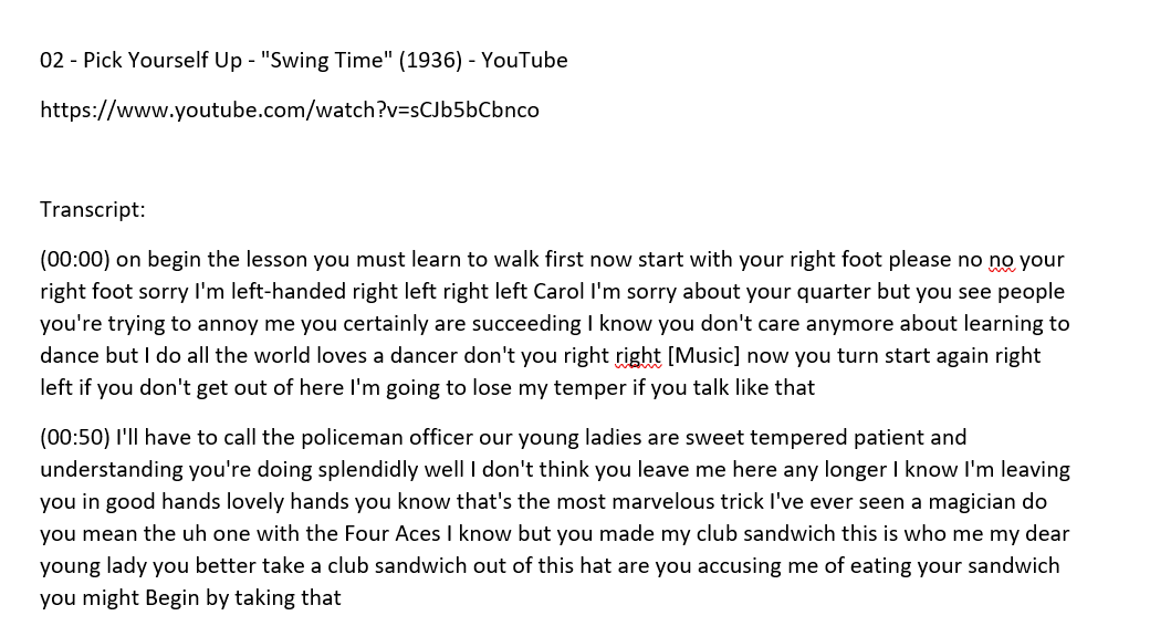 Copy Transcript: a plain text copy of the transcript, with timestamps, YouTube video title, and YouTube video hyperlink is created